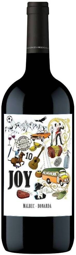 Joy, Malbec-Bonarda — это красное сухое вино, созданное из купажа сортов винограда Мальбек и Бонарда, выращиваемых в долине Майпу. Виноградники расположены на высоте 700–900 метров над уровнем моря, на почвах преимущественно аллювиальных, с вкраплениями гравия и гальки. Ягоды собирают в момент оптимальной спелости и подвергают традиционной винификации в стальных чанах со строгим контролем температуры, что позволяет сохранить свежесть и яркие фруктовые ноты в вине.