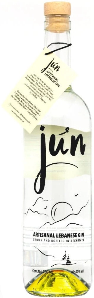 Jun, Artisanal Lebanese Gin — органический ливанский джин ручной работы, название которого произошло от сокращенного слова "juniper" — "можжевельник". Джин изготавливается из 9 местных растений, которые были выращены органическими методами, тщательно подобраны и объединены для создания джина со сложным характером, не похожего ни на что другое. В состав джина входят: ливанский дикий можжевельник с гор Бекаа, кориандр, имбирь, мастика (кора мастичного дерева), розмарин, лавровый лист, апельсин, лимон и калган. За идеальную гармонию и безошибочно узнаваемую вкусовую композицию джин получил золотую медаль на слепой дегустации "The Spirit Business/Global Gin Masters, 2022".