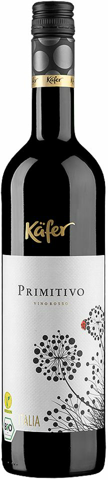 Kafer, Primitivo Bio Vegan — органическое красное сухое вино, созданное из винограда сорта Примитиво, произрастающего на виноградниках в Италии. После сбора урожая ягоды подвергаются традиционной винификации, проходящей со строгим температурным контролем. Вино составит отличную пару свинине, телятине и красному мясу.
