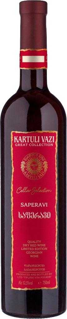 Kartuli Vazi, Great Collection, Saperavi — грузинское красное сухое вино, изготовленное из спелого винограда сорта Саперави, выращенного в Центральной части Грузии, в Кахетии. В переводе с грузинского "Kartuli Vazi" означает "грузинская лоза". Вино выдерживается в дубовых бочках не менее 9 месяцев. Саперави прекрасно сочетается со сложными блюдами из красного мяса и дичи, мясом, приготовленным на гриле, твердыми сырами.