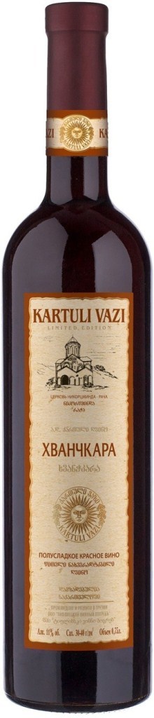 Kartuli Vazi, Khvanchkara — легендарное красное полусладкое грузинское вино, созданное из бленда винограда сортов Александроули и Муджуретули, выращенного в микрорайоне Хванчкара, в зоне Рача-Лечхуми. В переводе с грузинского "Kartuli Vazi" означает "грузинская лоза". Вино обладает насыщенным, бархатистым вкусом со зрелыми танинами, оттенками черной смородины, шоколада, ванили и дерева, переходящими в длительное согревающее послевкусие.