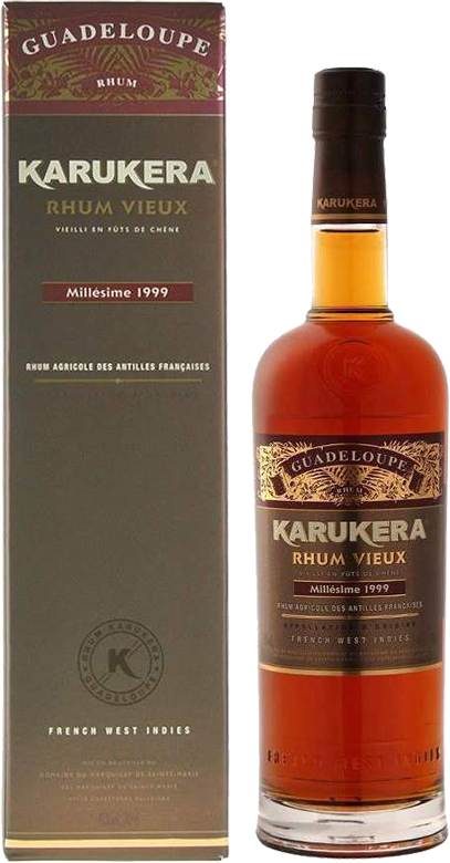 Karukera, Rhum Vieux, Millesime 1999 — великолепный ром из Гваделупы, который был выдержан в небольших дубовых бочках из-под бурбона, что, несомненно, придало ему необычайный вкусовой и ароматический шарм. Карибский климат ускоряет период созревания рома и позволяет ему полностью развить свой тонкий, изысканный аромат. Винтаж 1999 года был удостоен золотой медали на конкурсе "Concours General Agricole" в Париже в 2012 году.
