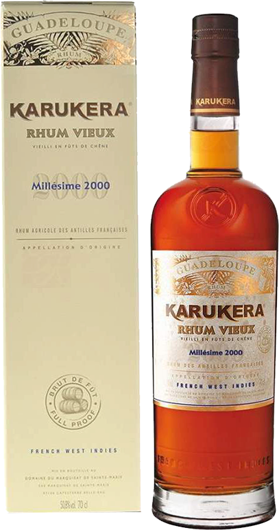 Karukera, Rhum Vieux Millesime — это лимитированная серия рома от производителя Домен дю Маркиса. Миллезим 2000 года — прекрасный напиток, выдержанный в американских дубовых бочках из-под бурбона, обладающий неповторимыми, индивидуальными характеристиками. Винтаж 2000 года был удостоен серебряной медали на конкурсе "Concours Général Agricole" в Париже в 2011 году.