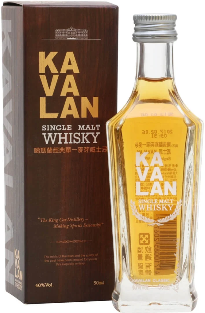 Kavalan, Single Malt — односолодовый виски, для производства которого берется чистейшая вода из горных источников, которая и определяет стиль и качество этого виски. Виски отличается ярким янтарным цветом и чистым, свежим, элегантным ароматом с тонами орхидеи, оттенками тропических фруктов (манго), меда, ванили, грушевых леденцов, кокоса и шоколада. Мягкий вкус виски с маслянистой текстурой раскрывается сладкими нотами манго, деликатными пряными оттенками и завершается приятным послевкусием с нюансами цитрусовых.