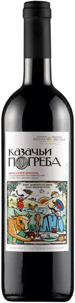 Казачьи Погреба, Красное Сухое — среднетелое, сбалансированное столовое вино из купажа винограда Каберне Совиньон и Цимлянский черный. Оно характеризуется ягодным букетом оттенков аромата и деликатной терпкостью вкуса. Вино хорошо сочетается с большинством мясных блюд, запеченными на гриле сырами и сытными закусками.