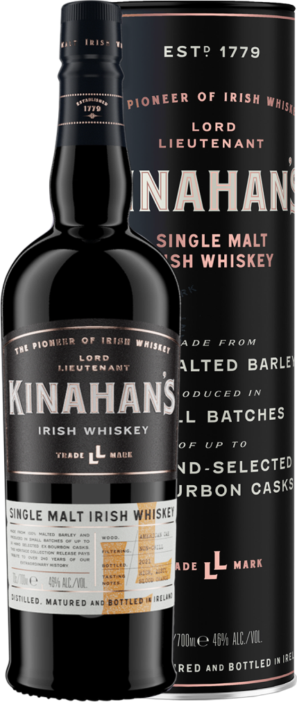 Kinahan's, LL Single Malt — сбалансированный односолодовый ирландский виски, изготовленный из 100% солодового ячменя, производимый небольшими партиями и выдерживаемый не менее трех лет в бочках из-под бурбона первого заполнения. Этот выпуск "Heritage Collection" отдает дань уважения более чем 240-летней выдающейся истории Kinahan's. Мягкий, округлый вкус с нотами ванили, меда, спелых фруктов придется по нраву любителям виски.