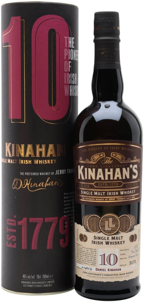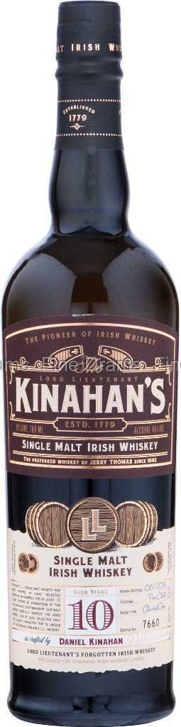 Kinahan's, Single Malt 10 Years — исключительный односолодовый ирландский виски, выпущенный в рамках коллекции "Kinahan's Heritage Collection". Эта коллекция, которая впоследствии удостоилась множества наград и медалей, появилась в 2015 году в честь древних традиций изготовления виски "Кинахан'с". Односолодовый виски 10-летней выдержки, презентация которого была представлена во многих международных изданиях, включая "New York Times" и "Bloomberg Pursuits", являет собою фантастическую ценность для этого класса виски. Экстраординарный вкус и яркая индивидуальность, сильный характер, маслянистая текстура и ноты горького шоколада в бархатном послевкусии... Этот уникальный виски необходимо попробовать!