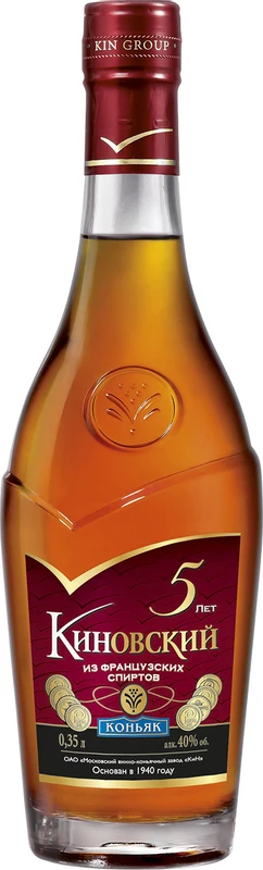 Именной коньяк "Киновский" создан в 2005 году. ТМ «Киновский» одна из самых динамичных торговых марок на рынке. «Киновский» первый коньяк в России, заговоривший о социальной ответственности и культуре потребления алкоголя. Среди его сильных сторон - огромный кредит потребительского доверия, узнаваемости, актуальный дизайн. Коньяк «Киновский» представляет социальный проект «Знай меру!».