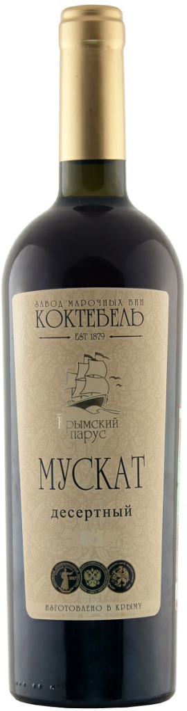Крымский Парус, Мускат Десертный — крепленое вино, которое изготавливается на заводе "Коктебель". Это вино вобрало в себя все самое прекрасное, что есть в Коктебеле: солнце, море, ветер, прелесть южных фруктов. Вино можно назвать воплощением истории местного виноделия: оно произведено из европейских мускатных сортов винограда, выращенных в регионе Коктебель у подножья потухшего вулкана Кара-Даг. Это одно из лучших вин Крыма, визитная карточка долины и завода.