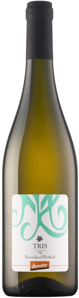 Korenika & Moskon, "Tris" — превосходное белое/оранжевое вино с гармоничным ароматом и сладковатым, хорошо сложенным вкусом. Вино изготавливается из винограда сортов Пино Блан, Мальвазия Истриана и Совиньон Блан, выращенного в словенской части полуострова Истрия на мергелевых почвах, в составе которых большое количество морских отложений. Виноградники культивируются по биодинамическим методам. Урожай собирается вручную. При производстве вина применяются 36-часовая мацерация на кожице и ферментация с натуральными дрожжами в стальных резервуарах. Для годовой выдержки вина также используются емкости из нержавеющей стали.