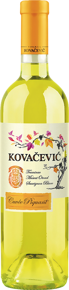 Kovacevic, Cuvee Piquant сочетает в себе интенсивный аромат Траминера, солнечность Муската и ослепительную свежесть Совиньон Блан. Во французской терминологии "Пикант" относится к винам, которые характеризуются приятной структурой и гармоничной кислотностью. Cuvee Piquant полностью оправдывает свое название. Потенциал вина составляет 3-5 лет.