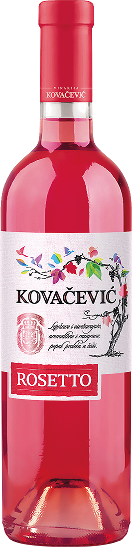 Живое, яркое, освежающее вино Vinarija Kovacevic, Rosetto получают из винограда сортов Каберне Совиньон и Мерло по технологии, применяемой при производстве белых вин. Вино Розетто получило эпитет "весна в стекле" за его светло-розовый цвет кристальной чистоты. Его считают идеальным напитком для весны и лета, подавая как аперитив или в паре с итальянской ветчиной прошутто, макаронами болоньезе, жареной рыбой, копченым лососем.