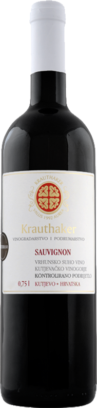 Вино Krauthaker, Cabernet Sauvignon производится из винограда, выращенного в Кутьево. Его полный фруктовый аромат с оттенками черной смородины и спелой черешни, нотами дерева, черного перца, шоколада и трав больше напоминает Каберне Фран. Сухой, теплый, богатый, сбалансированный вкус вина обладает крепкими, зрелыми танинами. При длительной декантации букет вина преображается и становится более свежим, а фруктовые ноты — более тонкими и изысканными. Выдержанное в течение 15 месяцев в дубовых бочках, вино обладает фантастическим потенциалом хранения.