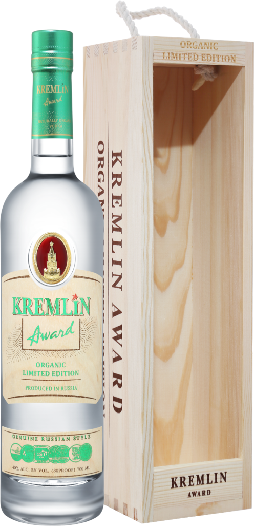 Водка "Kremlin Award" Organic Limited Edition изготавливается из спирта, полученного в результате перегонки перебродившего сусла из лучших сортов органической пшеницы. Пшеница выращивается без использования каких-либо химических удобрений. Чистейшая артезианская вода, используемая в производстве, проходит 7 степеней очистки, в том числе через нано-фильтр. Водка обладает чистым, свежим вкусом с мягкой текстурой, благодаря чему очень легко пьется. Крепкий напиток лучше всего употреблять хорошо охлажденным в качестве аперитива или в сопровождении закусок, горячих и холодных мясных блюд, а также овощей.