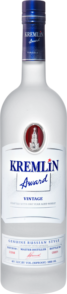 Авторская водка "Kremlin Award" Vintage, разработанная мастером-купажистом В.Н. Аксеновым, изготовлена из спирта класса "Люкс" и природной питьевой воды. Спирт получают из пшеницы ценных сортов с наилучшими показателями по качеству выбранного года, выращенной в экологически чистых районах. Для получения спирта пшеницу хранят в течение года в элеваторах до достижения физиологической зрелости. Полученный из нее спирт "Люкс" смешивают с природной питьевой водой, после чего осуществляется многоступенчатая очистка через экологически чистый березовый уголь. Затем обязательно следует период "отдыха" и выдержки водки. "Кремлин Эворд" Винтаж выпускается в ограниченном количестве, каждая бутылка пронумерована.
