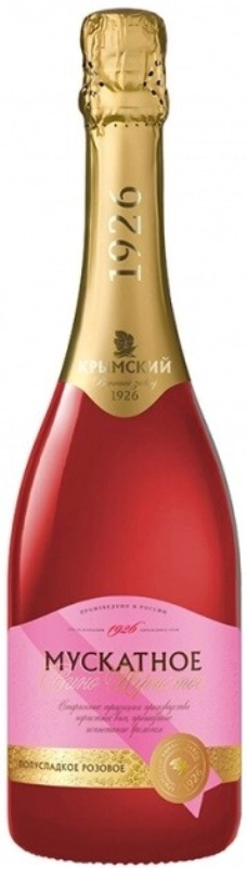 Игристое вино Крымское, Мускатное, Розовое Полусладкое