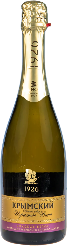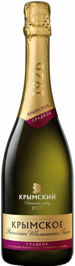 Российское шампанское "Крымское" Сладкое — белое игристое сладкое вино приятного светло-соломенного цвета с перляжем из большого количества маленьких пузырьков. Сбалансированный, изысканный вкус шампанского "Крымское" Сладкое украсит как тихий романтический вечер, так и торжественную трапезу.