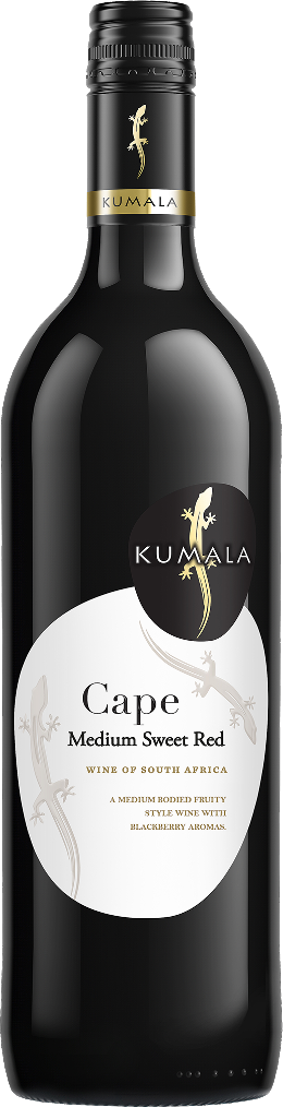 Красное полусладкое вино Kumala, Medium Sweet Red, изготовленное из винограда сортов Руби Каберне и Сенсо, отличается тонким фруктово-ягодным ароматом и сладким вкусом с освежающей элегантностью и тонами сухофруктов.