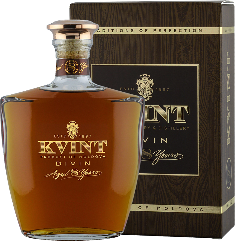 Kvint, Divin XO, 8 Years Old — ординарный молдавский коньяк, полюбившийся потребителям и у себя на родине, и за ее пределами. Продукция торговой марки "Квинт" активно продвигается и на мировом рынке благодаря достойному качеству. Коньяк создают из коньячных спиртов, полученных из выращенных в Молдове сортов винограда. Дистилляты выдерживаются в дубовых бочках, что придает коньякам насыщенный, приятный вкус и благородный характер.