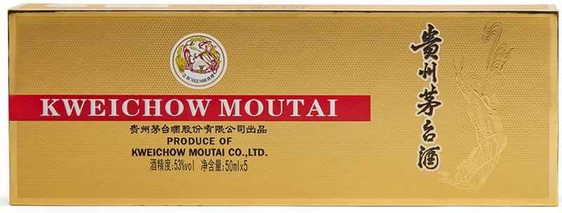 Байцзю Kweichow Moutai предлагается в светлом футляре, содержащем 5 миниатюрных бутылок. Напиток идеален для коллекционирования и приобретения в подарок. Он относится к классу китайского национального крепкого алкоголя и содержит в основе дистилляты пшеницы, сорго, а также чистейшую родниковую воду. Изготовление прошло по методам сбраживания при воздействии специальной закваски, перегонки и выдержки сроком около трех лет. Крепость байцзю довольно высокая — 53 градуса.