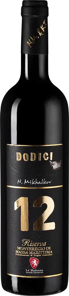 Элегантное красное вино "12" Dodici Riserva, Monteregio di Massa Marittima изготовлено методом традиционного виноделия. Название вина "Додичи" переводится с итальянского как "12", оно было названо в честь одноименного фильма Никиты Михалкова. На каждой бутылке вина "Додичи" имеется гравировка автографа знаменитого режиссера.