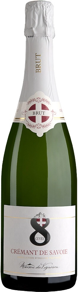 Cuvee 8, Brut, Cremant de Savoie — освежающее игристое вино, представляющее регион Савойя, который расположен в Альпах, к югу от Женевского озера. Вина из этого региона — настоящая редкость, на экспорт идет всего 5% производимой продукции. Для его создания используется необычный купаж: Жакер, Шардоне и Альтес. Виноград собирают вручную и перемещают в перфорированных ящиках на винодельню. В производстве используется только лучший сок, так называемое "сердце" пресса. Винификация занимает около месяца, прежде чем будет добавлен сахар и дрожжи для вторичного брожения во время розлива в бутылки. Игристое вино созревает 9 месяцев на осадке, затем бутылки переворачивают и оставляют еще на 3 месяца. Общий срок созревания составляет не менее года. 12-месячный период необходим для того, чтобы пузырьки полностью интегрировались и дали тонкий и элегантный перляж.