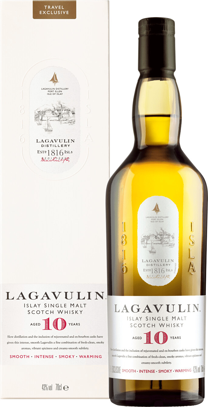 Lagavulin, 10 Years Old — односолодовый шотландский виски с острова Айла, выдержанный в течение 10 лет в бочках из американского дуба из-под хереса первого использования. Виски превосходен в качестве дижестива, в чистом виде или с добавлением воды.