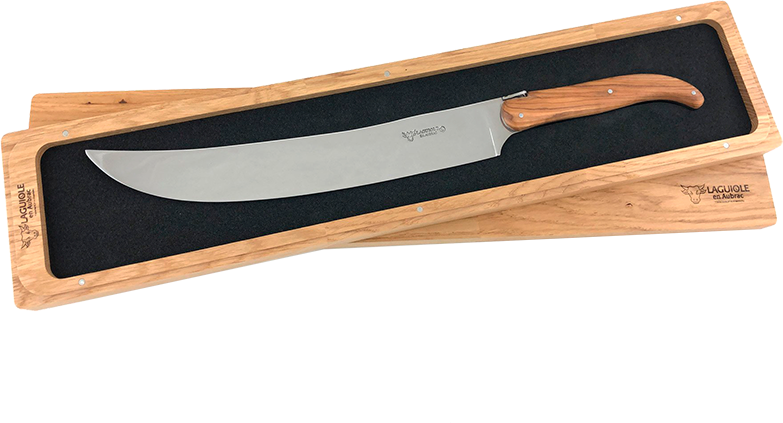 Сабли Laguiole En Aubrac Sabre Сhampagne Olivier для сабража изготавливаются мастерами вручную, поэтому невозможно найти два полностью идентичных изделия. Лезвие выполнено из качественной стали, оно острое и износостойкое, со временем на нем не появятся царапины и зазубрины. Ручка сабли изготовлена из оливкового дерева. Она тщательно отшлифована, поэтому очень приятная на ощупь. За счет продуманной эргономики и отличного баланса использовать саблю очень удобно. С ее помощью можно будет эффектно и безопасно срезать горлышко в бутылке с шампанским.