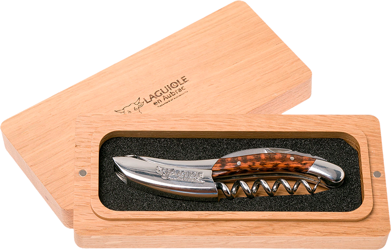 Штопоры Laguiole En Aubrac Sommelier Амаретто относятся к винным аксессуарам специализированной серии для сомелье. В них каждая деталь адаптирована под частое откупоривание винных бутылок. Наличие специального зазубренного ножа облегчает срезание упаковочной пленки с горлышка. Острая спираль из нержавеющей стали на пять витков легко проникает в мягкую пробку из натурального и искусственного материала. В сложенном виде штопор Laguiole En Aubrac Sommelier Amourette занимает минимум места, его можно свободно носить в кармане, брать с собой на природу, различные выездные мероприятия.