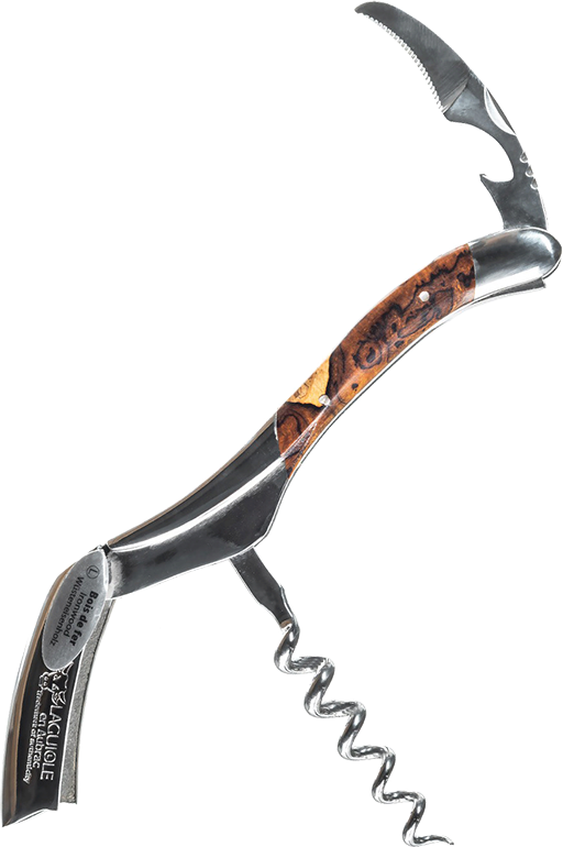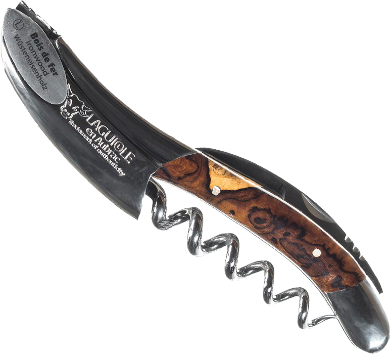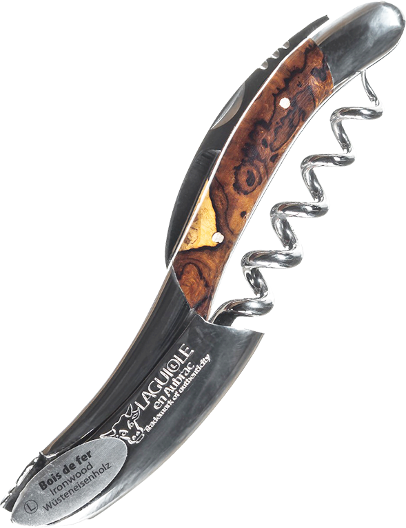 Французский штопор Laguiole En Aubrac Sommelier Bois de fer brillant собран вручную из качественных деталей. Для их изготовления была использована сталь марки 12C27, которая не ржавеет и не требует частой заточки. Спираль на 5 витков легко проникает в телопробки, а удобная рукоять помогает извлечь ее без повреждений. Чтобы срезать защитную пленку с горлышка стоит использовать небольшой складной нож. Рукоять штопора выполнена из железного дерева, которое было тщательно отшлифовано. Мастера сумели подчеркнуть красоту его уникального рисунка.