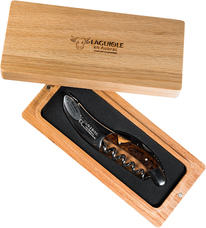 В сложенном виде аксессуар безопасно переносить и хранить, он очень компактный. Поставляется штопор Laguiole En Aubrac Sommelier Bois de fer brillant в красивой деревянной коробке. На его корпусе есть уникальная мастерская гильошировка и фирменная пчела, которые подтверждают оригинальное происхождение изделия.