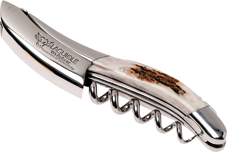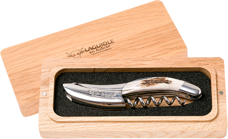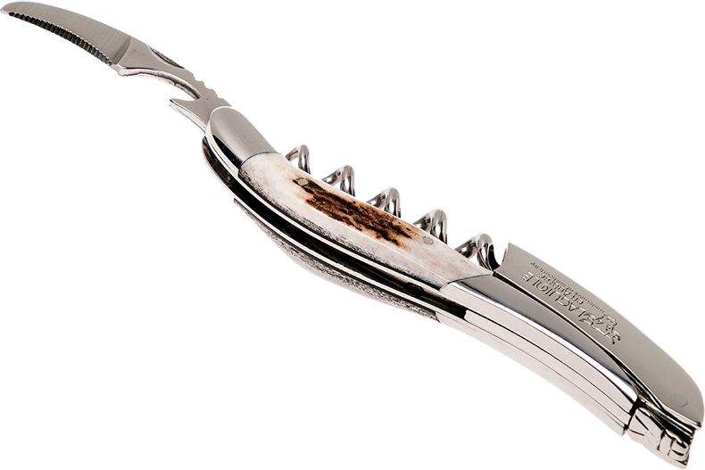 В штопоре Laguiole En Aubrac Sommelier рог оленя нет изъянов. Он отличается компактными габаритами и удобной складной конструкцией. Для срезания упаковки с горлышка бутылки предусмотрен складной зубчатый нож. Он очень острый и небольшой, поэтому им удобно пользоваться. Острая спираль на пять витков изготовлена из нержавеющей стали. Она легко проникает в любую мягкую пробку, не разрушает ее при извлечении. Ручка штопора Laguiole En Aubrac Sommelier Bois de cerf изготовлена из рога оленя. Ее форма адаптирована под ладонь, поэтому с использованием аксессуара проблем не возникает.