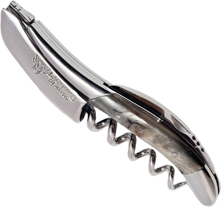 Функционально штопор Лайоль Эн Абрак Сомелье рог барана очень продвинут. Он раскладной, поэтому в сложенном виде занимает минимум места и безопасен для транспортировки. Изделие оснащено зубчатым ножом для срезания упаковочной пленки с горлышка бутылки. Спираль штопора состоит из пяти витков и имеет острый конец, поэтому легко проникает в пробки из любого мягкого материала. Он завинчивается по часовой стрелке. Благодаря анатомической форме штопора Laguiole En Aubrac Sommelier рог барана использовать его можно любой рукой. Поставляется товар в оригинальной деревянной коробке.
