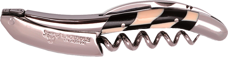 Легко и элегантно откупорить бутылку хорошего вина поможет штопор Laguiole En Aubrac Sommelier Damier Ebene + Ivoire. Он имеет уникальную рукоять, которая изготовлена из кости мамонта и эбенового дерева. Такое сочетание смотрится очень солидно и дорого. Каждый штопор Laguiole En Aubrac Sommelier Эбеновое дерево + Кость мамонта ручной работы, он изготавливается только одним мастером. Все детали тщательно подогнаны, поэтому нет люфтов. Конструкция рассчитана на ежедневное частое использование, на штопор дается бессрочная гарантия. Конструкция и пяти витковая пружина изготовлены из прочной стали. Для удобства срезания пленки с горлышка бутылки в конструкции штопора Лайоль Эн Абрак Сомелье Эбеновое дерево Кость мамонта предусмотрен складной небольшой нож.
