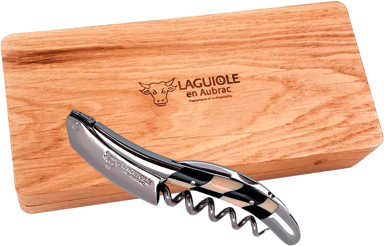 Помимо долгого срока службы изделие отличается презентабельным внешним видом. На его лицевой стороне размещен фирменный логотип компании Laguiole, который хорошо узнаваем во всем мире и берет свое начало в 1828 году. На спирали можно заметить изображение пчелы, которое подтверждает оригинальное происхождение продукции. Гарантией ручной работы выступает особый рисунок на металле, являющийся визитной карточкой мастера-изготовителя. Поставляется штопор Laguiole En Aubrac Sommelier Damier Ebene + Ivoire в коробочке из дуба.