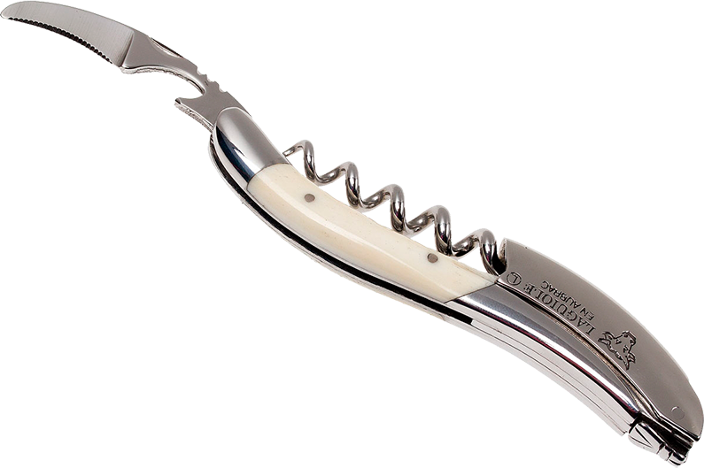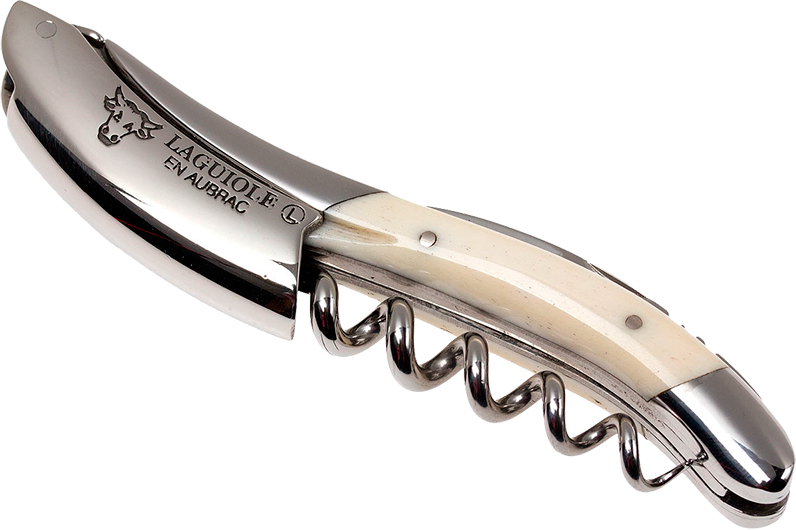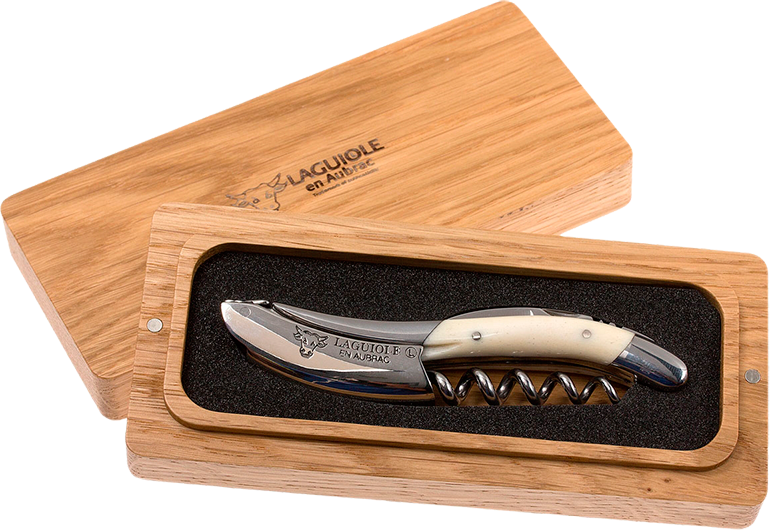 Рукоять штопора Laguiole En Aubrac Sommelier En Os выполнена из настоящей кости. Она тщательно отшлифована, поэтому приносит только приятные тактильные ощущения. За счет продуманной эргономики рукоять удобно держать любой рукой. Остальная конструкция штопора сделана из прочной нержавеющей стали, которая не подвержена коррозии. Удобный складной нож облегчает срезание фольги с горлышка бутылки, при этом об него невозможно случайно пораниться. Острая нарезная спираль на 5-ть витков быстро проникает в мягкую пробку из любого материала. С помощью специального упора ее можно очень просто извлечь без особых усилий.