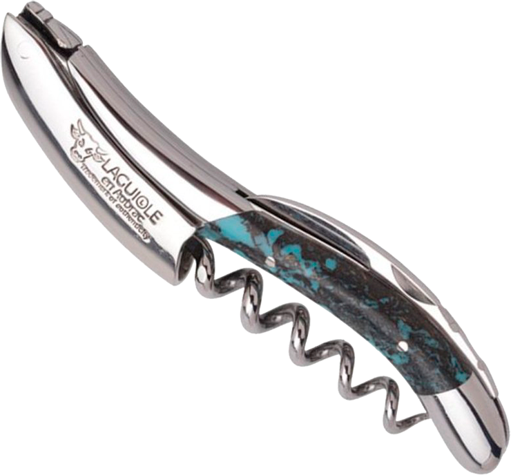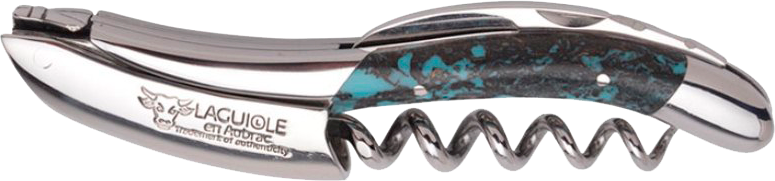 Штопор Laguiole En Aubrac Sommelier l'Organique Bleu изготовлен из нержавеющей стали, он очень прочный и не боится коррозии. Острая спираль на 5 нарезных витков легко проникает в мягкую пробку из любого материала, не повреждает ее при извлечении. Чтобы откупоривание бутылки было проще, предусмотрен специальный плоский упор. Для срезания фольги с горлышка нужно использовать складной острый нож. Рукоять штопора Лайоль эн обрак Сомелье Органический синий выполнена из современного полимера. Она не боится воздействия влаги, не впитывает загрязнения, идеально выглядит и очень красивая. Благодаря продуманной эргономике аксессуар можно комфортно держать любой рукой. Каждый штопор собирается вручную, на него дается пожизненная гарантия. Оригинальность товара подтверждается клеймом на металле.