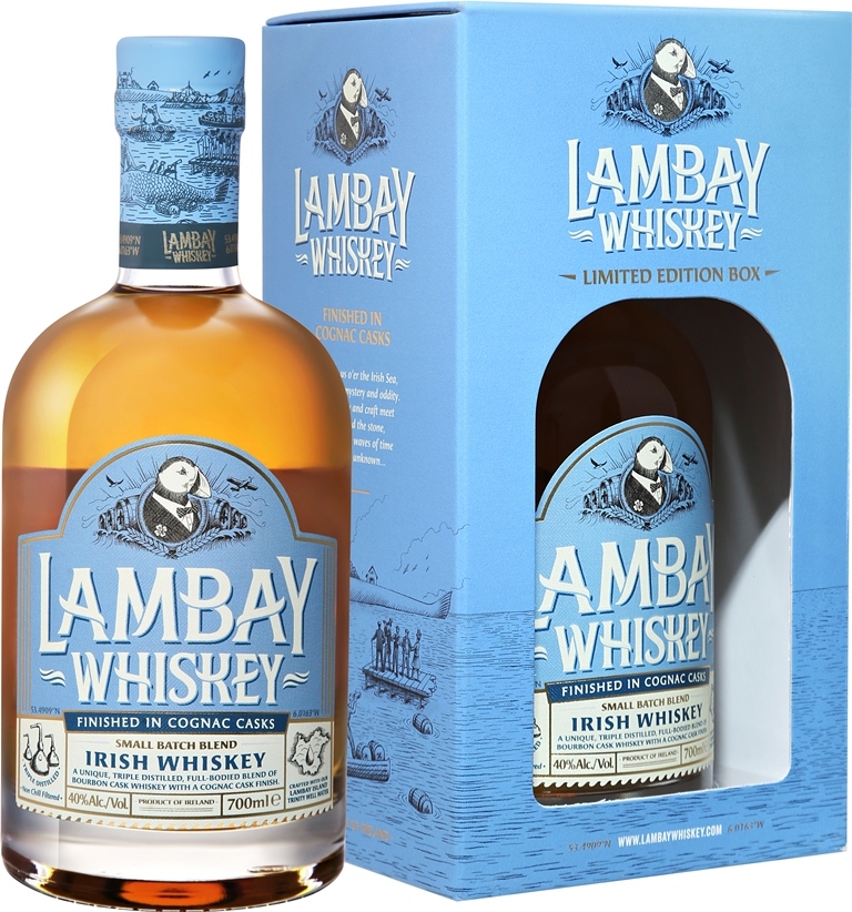 Lambay, Small Batch Blend — купажированный ирландский драм, изготовленный из смеси трижды дистиллированных солодового и зернового виски, разбавленных водой из колодца Тринити, расположенного на острове Ламбей. Первые четыре года виски созревал в дубовых бочках из-под бурбона первого наполнения, а на финише прошел выдержку в дубовых бочках из-под коньяка "Camus". Восхитительно гладкий виски "Ламбэй" Смолл Бэтч Бленд обладает такими же уникальными характеристиками, как и сам остров Ламбэй.