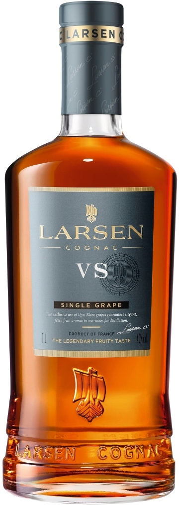 Коньяк "Larsen" VS создается из спиртов, изготовленных из винограда сорта Уни Блан, выращенного в Фэн Буа, и выдержанных более трех лет. Это самый молодой коньяк в линейке "Ларсен". Выдержанный в дубовых бочках, этот коньяк развивает безошибочный характер и демонстрирует насыщенный, гладкий вкус с тонами спелого винограда и душистый аромат с тонами фруктов и деликатными цветочными и травяными нюансами.
