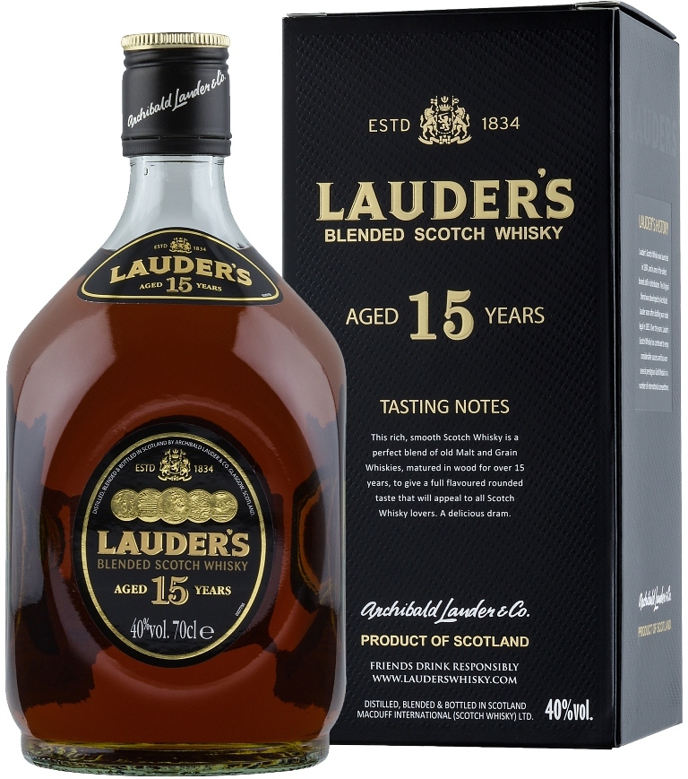 Lauder's, 15 Years Old — шотландский виски, который выпускается с 1834 года. Выдержка виски проходит в бочках из-под бурбона и из-под хереса в течение 15 лет. За время своего существования "Лаудер'с" завоевал большое количество высоких наград, почетных званий и любовь потребителей во всем мире.