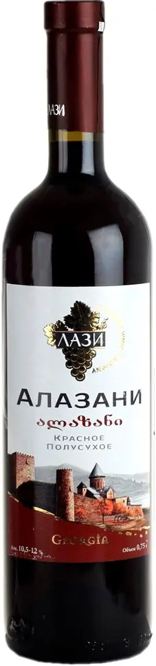 Красное полусладкое вино Лази, Алазани красное создается из купажа красных сортов винограда: Саперави, Александроули, Муджуретули, Оджалеши и других красных сортов, выращенных в Западной и Восточной Грузии. Выпускается с 1977 года. Вино темно-рубинового цвета характеризуется гармоничным и бархатистым вкусом. Отлично подойдет в качестве аперитива.