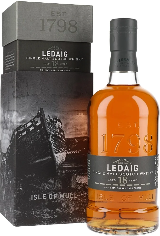 Ledaig, Aged 18 Years — роскошный виски 18-летней выдержки, являющийся синонимом торфянистого вкуса островного односолодового виски. Название Ledaig произносится как "Led-chig" или Ледчиг, что в переводе с гэлльского означает "убежище" или "благословенный приют" (Safe Heaven). Виски "Ledaig" Aged 18 Years является результатом возрождения уникального стиля виски, который получен в результате естественной выдержки спиртов в течение 18 лет в бочках из испанского дуба.