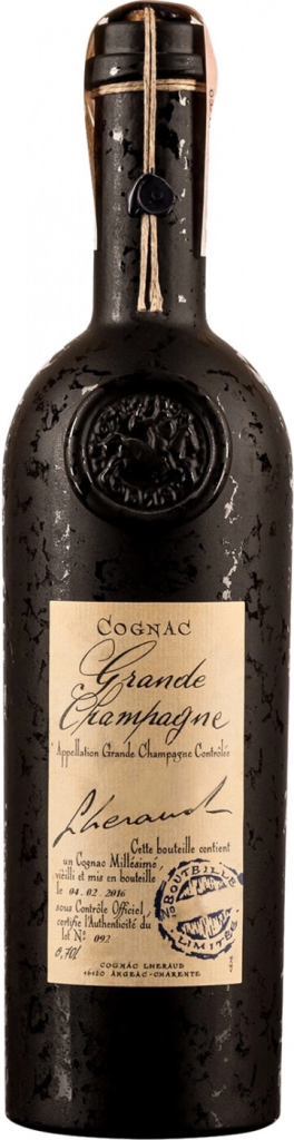 Lheraud, Cognac 1988 Grande Champagne — замечательный миллезимный коньяк 1988 года, для изготовления которого производитель использовал лучшие коньячные спирты региона Гранд Шампань, выдержанные в бочках более 25 лет. Характеристики напитка — впечатляющие, они не оставят равнодушным ни одного почитателя коньяков. Вкус — мощный и насыщенный, немного горьковатый, с тонами темного шоколада и ванили. После каждого глотка остается приятный согревающий шлейф. Аромат как нельзя лучше подчеркивает вкус своими древесными и травяными тонами, которыми напиток обогатился за годы старения в бочке. Винтаж 1988 года был разлит в бутылки при бочковой крепости 46%, что позволяет полностью раскрыть ароматы и вкусы напитка.