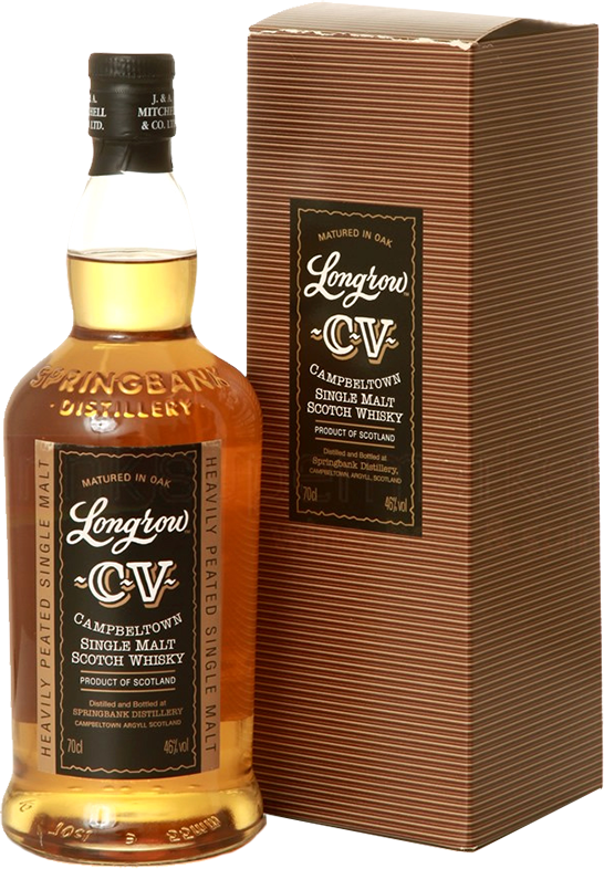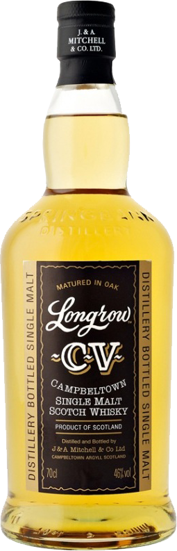 Longrow, CV — односолодовый виски двойной дистилляции, в купаж которого входят 4 типа спиртов: выдержанные в бочках из-под бурбона в течение 6 лет, выдержанные в бочках из-под рома и в бочках из-под портвейна в течение 10 лет, выдержанные в бочках из-под хереса в течение 14 лет.