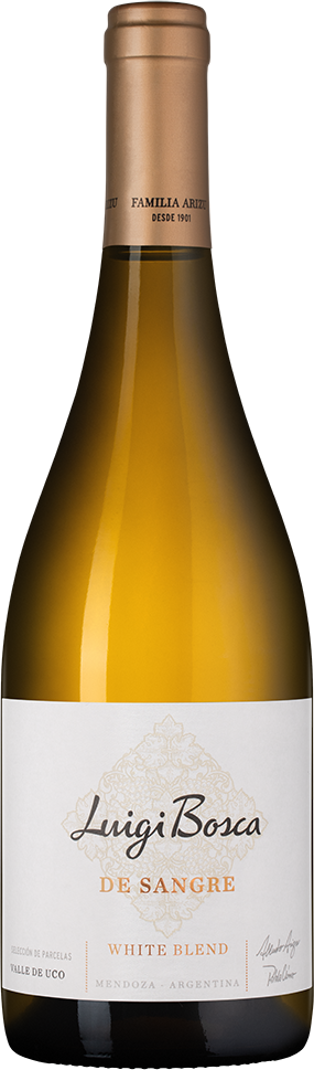 Luigi Bosca, De Sangre, White Blend — богатый и величественный купаж, рожденный из трех сортов винограда, отражающий новаторский подход главного винодела Боска и стиль хозяйства. Виноград для создания вина выращивается на 20-летних виноградниках Гуалталлари на высоте 1230 метров над уровнем моря и 35-летних участках Тупунгато на высоте 1150 метров над уровнем моря. Виноград собирается вручную, грозди тщательно отбираются, а затем прессуются под давлением менее 1 бар. Полученное сусло декантируют при температуре 8°С в течение 24 часов. Каждый сорт ферментируется отдельно при контролируемой температуре 16°C в течение 10 дней. При этом Семильон и Совиньон Блан ферментируются в резервуарах из нержавеющей стали и выдерживаются в них же в течение 8 месяцев. Шардоне ферментируется в бочках из французского дуба, в которых затем проводится частичное яблочно-молочное брожение и выдержка на протяжении 8 месяцев. В течение этого времени вино остается в контакте с тонким осадком в суспензии для придания большей маслянистости. Затем вина смешивают, осторожно фильтруют и разливают готовое вино по бутылкам. Потенциал вина составляет около 8 лет.