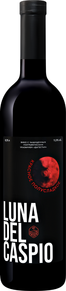 Luna del Caspio, Red Semi-Sweet — красное полусладкое вино, изготовленное из винограда сортов Каберне Совиньон, Мерло и Молдова. Виноград собирается в ранние утренние часы. Винификация протекает при строгом температурном контроле в стальных резервуарах. После микрофильтрации проводится розлив. Перед тем, как открыть для себя беззаботное спокойствие солнечного Юга, вино рекомендуется охладить до 14-16°С.
