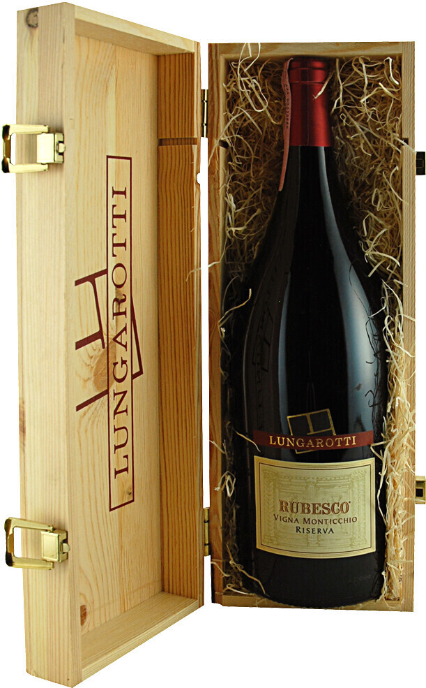 Lungarotti, Rubesco Riserva, Vigna Monticchio — одно из самых лучших вин Умбрии, которое производится только в лучшие годы урожая и воплощает лучшие традиции итальянского виноделия. Создается оно только из двух сортов винограда — Санджовезе и Канайоло, выращиваемого в местечке Монтиккьо на высоте 300 метров над уровнем моря. При этом вино обладает сложным, многослойным букетом вкуса и аромата, очаровывающего тонами черных и красных ягод и теплыми оттенками пряностей. Название "Рубеско" — румянец — здесь имеет другой смысл: радоваться и веселиться. На этикетке — барельеф, изображающий сбор урожая и фонтан Маджоре в Перудже, красивейший фонтан тринадцатого века.