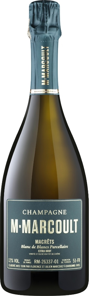 M.Marcoult, Macrets, Blanc de Blancs Parcellaire, Extra Brut — очень элегантное шампанское, созданное в стиле Блан де Блан исключительно из винограда сорта Шардоне. Большая часть урожая (80%) поступает из Barbonne-Fayel, а остальной виноград (20%) — из Val-de- Viere. Для создания этого изысканного кюве, очень гладкого и воздушного, виноделы стремятся использовать лучшие соки. Во время прессования сок делят на две части и используют только полученный в результате первого отжима. Винификация всегда тщательная, с отстаиванием и алкогольной ферментацией, которые проводятся при низкой температуре исключительно в стальных чанах. Также осуществляется 100% яблочно-молочное брожение. Перед вторичным брожением, протекающим в бутылках, базовое вино смешивается с резервными винами, доля которых составляет более 50%. Созревание на осадке длится минимум 36 месяцев. Далее проводится дегоржаж и добавляется дозировочный ликер в количестве 9 г/л.