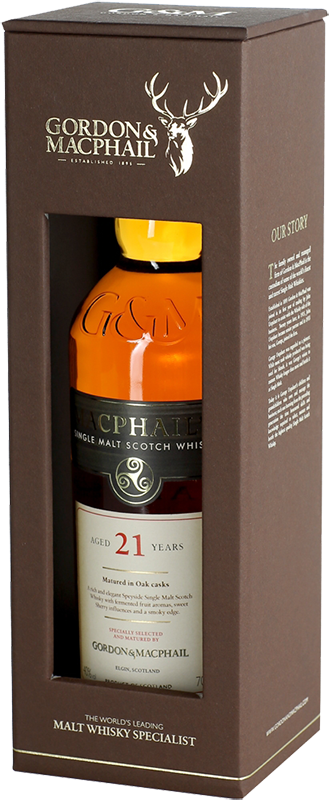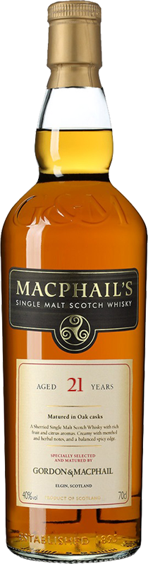 MacPhail’s, 21 Years Old — традиционный Speyside Malt Whisky, обладающий богатой палитрой и мягким характером. Способ его изготовления компания держит в строжайшем секрете, создавая тем самым некую атмосферу таинственности. Выдержка виски в течение 21 лет проходила в бочках из-под хереса. С годами длительной выдержки вкус виски смягчается и обретает характерное благородство.