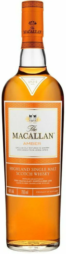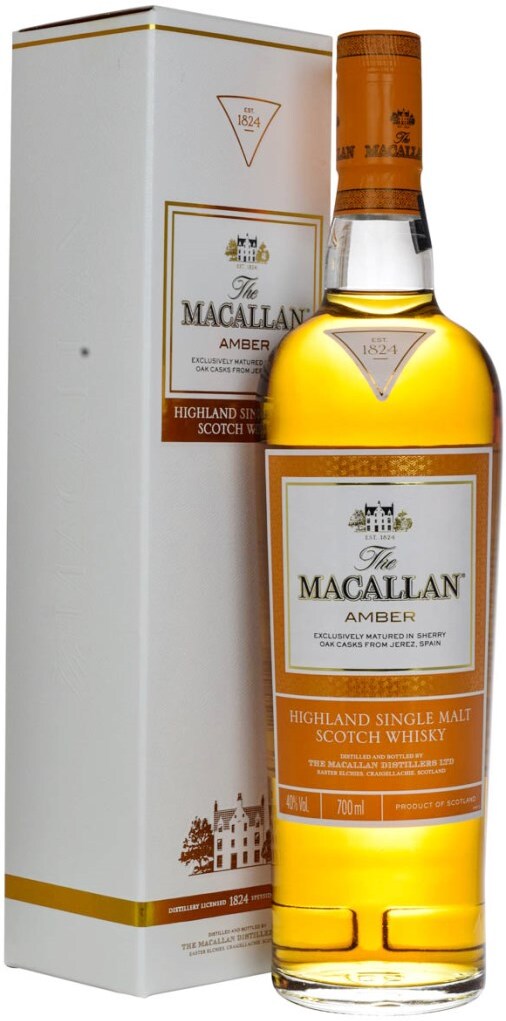 Виски Macallan Amber выдержан в бочках из-под хереса. Он входит в коллекцию The 1824 Series, созданную выдающимся мастером купажа винокурни Макаллан — Бобом Далгарно. В каждом из сортов серии он сделал акцент на том цвете виски, который напиток приобретает в зависимости от древесины бочки, где выдерживался спирт. По цвету виски можно судить и о его характере. Чем насыщеннее цвет, тем ярче будут его аромат и вкус. В Серии 1824 Макаллан также отказались от указания возраста виски на этикетке.